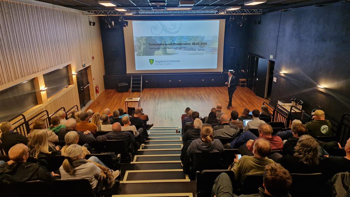 Bygland kommune vil takke for eit svært produktivt folkemøte om Prestneset og det reguleringsarbeidet vi no tek til med i fellesskap. Mellom 50 og 60 innbyggjarar med eit sterkt engasjement for området der bygda møter fjorden, stilte opp.