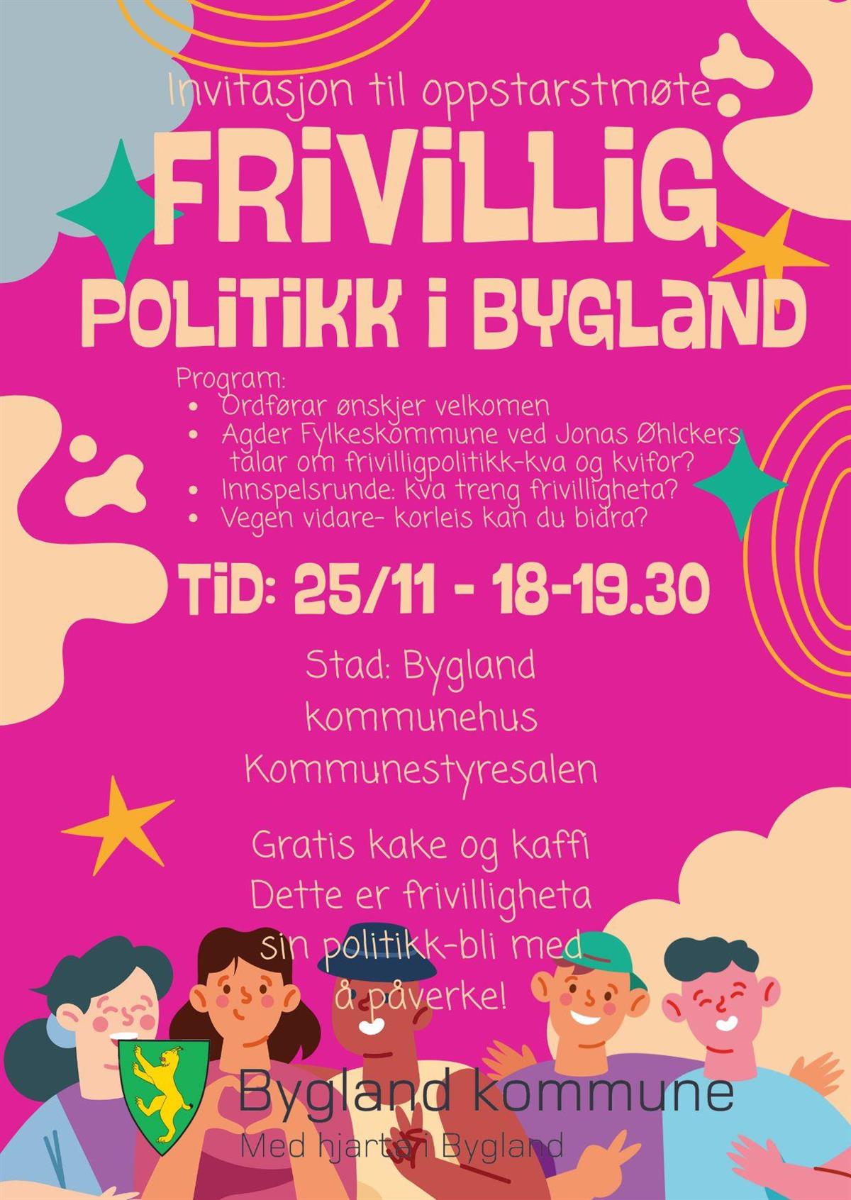 Invitasjon til oppstartsmøte- Frivilligpolitikk i Bygland