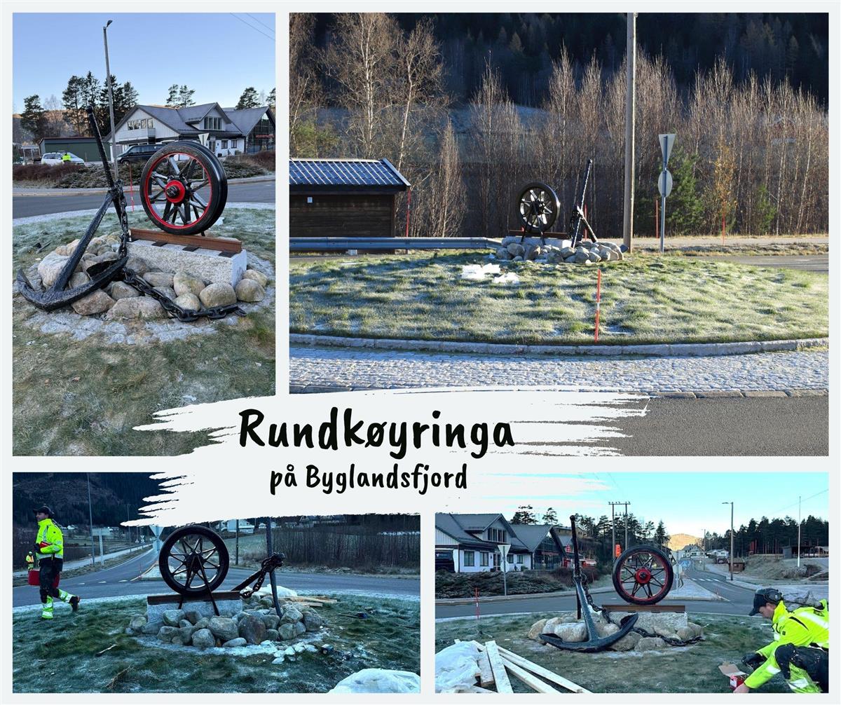 Installasjonen i rundkøyringa, som består av eit anker og eit jernbanehjul, er eit symbol på denne historia. Denne veka har Gunnar Haugå og Svenn Uleberg frå uteseksjonen lagt siste hand på verket. Gunnar Andersen var med i prosjektet i starten. Og no har me avslutta eit svært vellukka prosjekt.